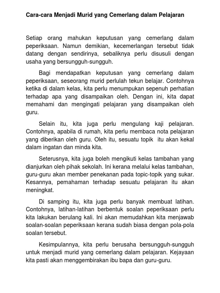 Karangan Tentang Cara Cara Menjadi Pelajar Cemerlang Pdf